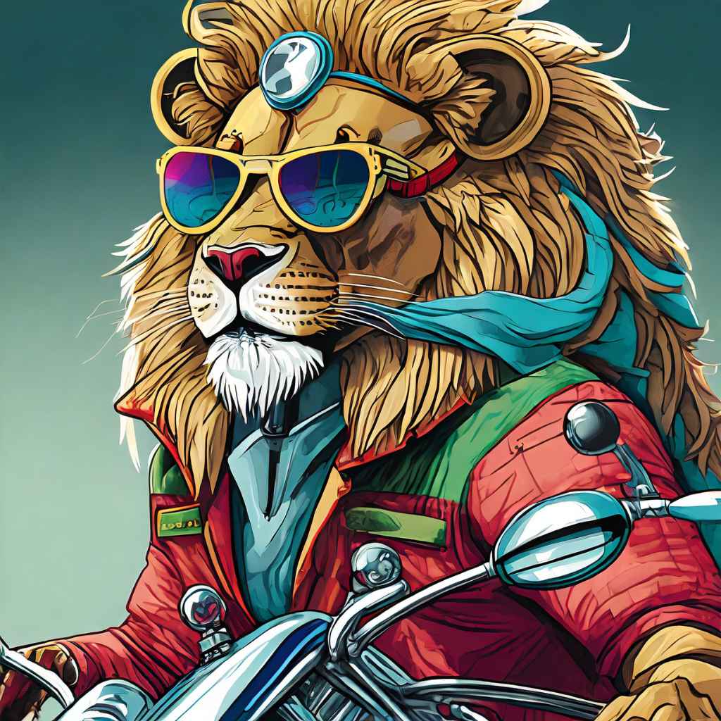 In the captivating artwork “Cruisin’ Roar” by the talented artist Afaq Aziz, a lion emerges as the epitome of wild elegance on two wheels. Cloaked in a bold red jacket, adorned with stylish glasses, and confidently perched upon a heavy bike, this biker lion exudes an air of unmatched sophistication. Aziz’s abstract approach to the portrayal infuses the composition with energy, dynamism, and a sense of urban cool. The red jacket, a striking focal point, amplifies the lion’s regal demeanor, while the stylish glasses add a touch of mystery to the character. The heavy bike becomes a symbol of power, as the lion navigates the abstract space with a fusion of grace and untamed spirit.